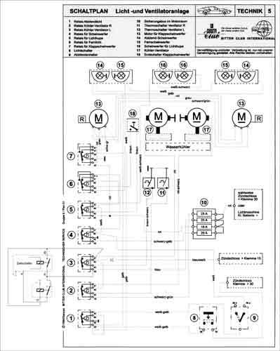 Heiße Luft auf Zeit Alle CD-Fahrer, und soweit mir bekannt ist auch SC-Fahrer, schlagen sich mit den hohen Motortemperaturen ihrer Boliden herum. Ein empfohlenes Mittel ist der Anschluss der elektrischen Lüfter direkt an die Batterie, um zumindest nach Abschalten des Motors ein weiteres Erhöhen der Motortemperatur zu verhindern. Auch im Stau kann es so sinnvoll sein, den Motor mal für ein, zwei Minuten abzustellen, um die Motortemperatur zu senken. Auf diese Möglichkeit habe auch ich zurückgegriffen und die Schaltrelais der Lüfter nicht mehr über das Zündschloss geschaltet. Diese Lösung hat jedoch den Nachteil, dass zumindest bei meinem CD der Lüfter schon mal bis zu 15 Minuten nach Abschalten des Motors weiterläuft. Das die Lüfter bei extremen Temperaturen so lange nachlaufen, muss nicht bei jedem Fahrzeug vorkommen. Je nach Fertigungstoleranz des Temperaturfühlers im Kühler, und des Relais kann es schon mal länger dauern bis er den Befehl gibt den Lüfter abzuschalten. Auch der so genannte "Thermosiphoneffekt ist konstruktionsbedingt, zumindest beim V8 des CD, nicht sehr ausgeprägt. Dieser Effekt sorgt normalerweise nach Abschalten des Motors für einen eigenen Wasserkreislauf. Wenn sich das Wasser im Kühler abkühlt, sinkt es nach unten und strömt in den Motor. Von oben fliest heißes Wasser nach, welches sich wiederum im Kühler abkühlt. Somit entsteht ein Kreislauf, der ohne Wasserpumpe auskommt. Um jedoch nun zu verhindern, dass der Lüfter meines CD die Batterie übermäßig belastet oder gar leer saugt, habe ich eine Schaltung entwickelt, welche den Lüfter nur eine begrenzte Zeit nach Abschalten der Zündung in Betrieb hält. Basis für diese Schaltung ist ein elektronischer "Präzisionszeitschalter, den es als Bausatz bei CONRAD Elektronik (Art. Nr. 19 12 80-33) für knapp zehn EUR zu kaufen gibt. Dieser Bausatz basiert auf einem Elektronikbaustein der eine so genannte "Monoflopschaltung realisiert. Auf unsere Lüfterschaltung bezogen, bedeutet dies, dass nach Abschalten der Zündung, diese Schaltung durch einen Impuls in Gang gesetzt wird. Nach einer exakt einstellbaren Zeit zwischen mindestens 1 Sekunde und maximal 5 Minuten wird der Lüfter automatisch abgeschaltet. Dies geschieht dann unabhängig vom Temperaturzustand des Fühlers im Kühler. Nach der eingestellten Zeit wird lediglich die Stromversorgung des Lüfterrelais zur Batterie unterbrochen. Nach Einschalten der Zündung bzw. Starten des Motors läuft der Lüfter wieder über die normale Betriebsschaltung und temperaturabhängig. Der Auf- und Einbau dieser Schaltung ist auch von versierten Laien zu bewerkstelligen. Man sollte jedoch mit einem Lötkolben vertraut sein und einwenig elektronische Kenntnisse mitbringen. Die Schaltung mit sämtlichen Bauteilen wird auf der mitgelieferten Platine zusammengelötet. Die Beschreibung ist sehr ausführlich und ziemlich narrensicher. Des Weiteren werden eine Diode (lässt den Strom nur in eine Richtung durch) und ein weiteres Relais verbaut. Die gesamte Elektronik wird in einem kleinen Kunststoffgehäuse von 5cm x 5cm untergebracht (gibt es ebenfalls bei CONRAD). Wie die Schaltung im Fahrzeug verbaut wird, ist auf dem ergänzten Schaltplan des BITTER CD eingezeichnet. Bis auf den Einbau der Diode in den vorhandenen Kabelbaum, wird dieser nicht verändert. Somit ist die Gefahr hier Schaden anzurichten relativ gering. Vorraussetzung für die Funktion meiner Schaltung ist, dass die normale Schaltung der Lüfter über das Zündschloss und nicht über Dauerplus läuft. Für den technisch Interessierten hier ein paar Erläuterungen zur Funktion der Schaltung: Standardmäßig lässt sich die Schaltung in einem Zeitintervall bis zu 180 Sekunden steuern. Um auf die gewünschten 5 Minuten zu kommen, habe ich den entscheidenden Kondensator (ist in der Bauanleitung beschrieben) gegen einen größeren Elko (500 mF) ausgetauscht. An dem eingebauten Poti wird die Zeit eingestellt. Über ein Trennrelais, welches beim Ausschalten der Zündung abfällt, wird die Schaltung in Betrieb gesetzt. Das über die Zündung laufende Lüfterrelais fällt nun ebenfalls ab und der Lüfter müsste stehen bleiben. Da die neue Schaltung nun parallel zum Lüfterrelais den Stromkreis über das zusätzlich verbaute Relais wieder gegen Dauerplus schließt, läuft der bzw. laufen beide Lüfter weiter, bis die eingestellte Zeit verstrichen ist bzw. die Temperatur gesunken ist und das Relais ebenfalls abfällt. Die eingebaute Diode ist erforderlich, da sonst nach Aktivierung der Zeitschaltung die Zündung über das Relais ebenfalls wieder eingeschaltet würde. Schaltet man nach Ablauf der Zeit die Zündung wieder ein, und die Temperaturfühler haben noch nicht abgeschaltet, laufen die Lüfter wieder an. Bei jedem Ein- und Ausschalten der Zündung, beginnt das Zeitintervall von vorn. Die Elektronik ist für eine Spannung zwischen 10V und 15V ausgelegt und gegen Überlast geschützt. Da mit dem Relais nur der geringe Schaltstrom der Lüfterrelais geschaltet wird, können hier kleinste Relais für Printschaltungen verbaut werden. Das von mir verwendete Relais passte noch mit auf die Platine. Natürlich bin ich auch jedem CD-Fahrer behilflich, wenn er mit dem Gedanken spielt sich diesen kleinen Helfer einzubauen.